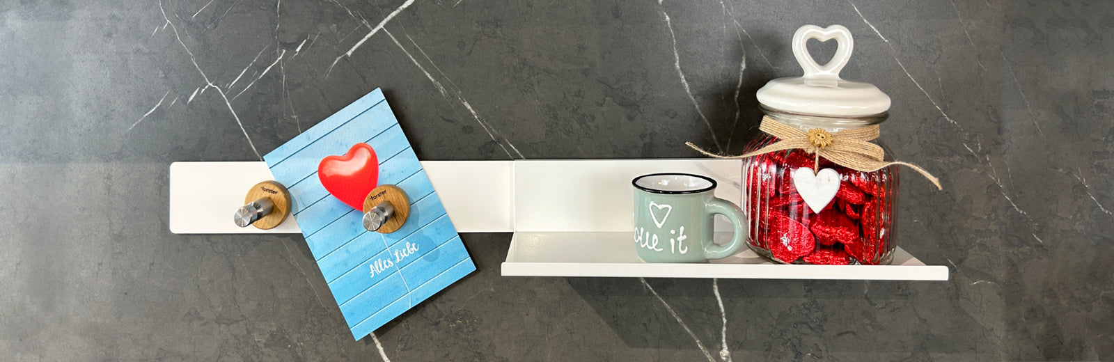 Aber auch wenn Sie über keine magnetische Oberfläche verfügen, lassen sich unsere Accessoires problemlos mit den mitgelieferten Schrauben anschrauben oder mit dem von uns empfohlenen Klebeband zuverlässig ankleben.